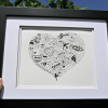 The piece shown is for a couple that will be married in 2013- and is a surprise gift for the couple from a best friend. **Click on any of the pictures and it will give you a closer look at the illustration** It takes a good 2 pages of moments to fill an 8 x 10 heart...more is always welcome! I have a sample list of memories that can be emailed if you'd like an example of a list!