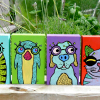 What a cute little piece of art to add to anyone's collection. These are my animals with glasses! They are roughly 2 x 3 x .75 inches. Each block is $8.00. The blocks are very bright and cheery- hand painted and then sealed with a clear acrylic sealer. Leave me a note in the notes to seller box upon checkout of which block/colors you'd like! *These are made to order, so please allow 5 to 10 buisness days to create your little block of fun*