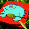 This is "blue frog" on wood. A nifty piece, roughly 4 x 4 x 3/4 inches...perfect for a first art gift or a small space that needs some love. All my blocks are hand painted/drawn and sealed with a clear acrylic sealer to keep your art block clean and safe from scratches. All sides are painted so can be displayed any where.
