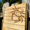 This is a wood burned Maryland Blue Crab on a mini pallet.
