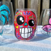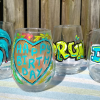 Hand painted in my home studio by me. I paint on heavy weight stemless glasswares. All images are painted with a heat aproved enamel paint, baked on. You should hand wash these glasses just as a precaution.